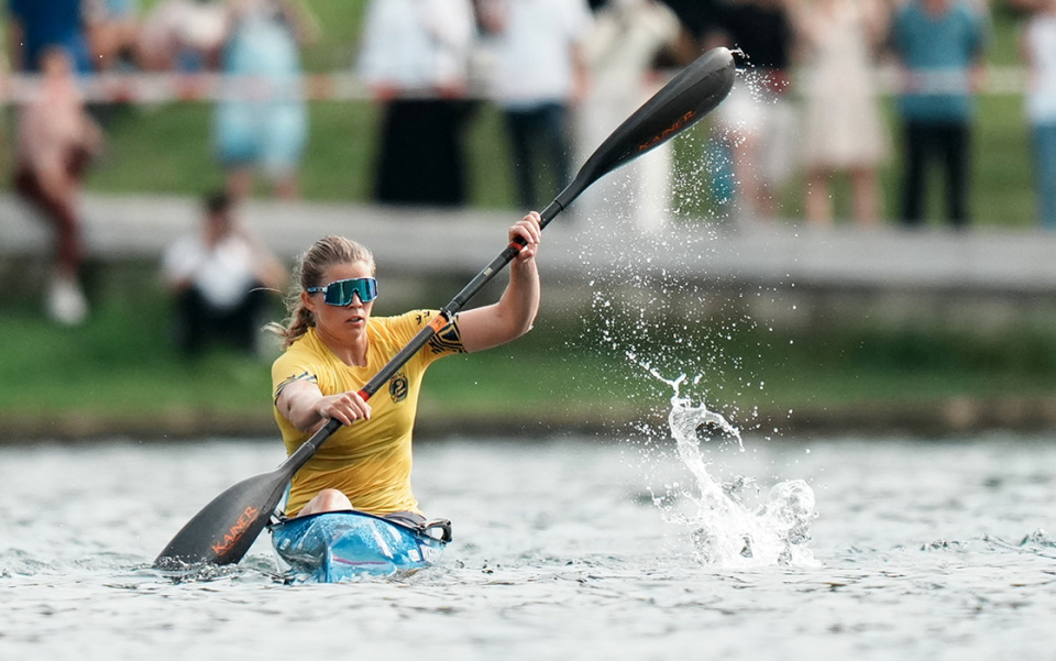 当日,2025年成都世运会皮划艇马拉松女子单人皮艇短距离决赛举行。8月9日,冠军瑞典选手安德森在比赛中。新华社记者 李嘉南 摄